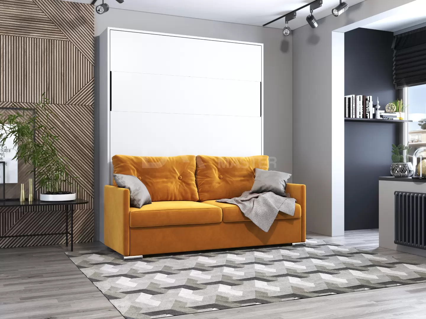 Шкаф-кровать трансформер с диваном "Comfort Balance" работает на механизме раскладывания собственной разработки "Balance". Кровать раскладывается легким движением руки, превращаясь в полноценное спальное место. Просто потяните за ножку-маятник, которая самостоятельно фиксируется в нужное положение при опускании.
